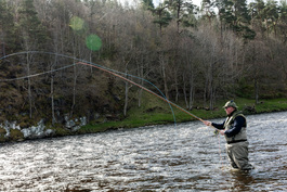 GB. Scotland. Craigellachie. The Macallan whisky distillery. Robert Mitchell. The Macallan Ghillie. Fly fishing in the River Spey. 2016.