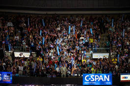 USA. Philadelphia, Pennsylvania. 2016. The scene inside the Wells Fargo Center during the last day of the DNC.