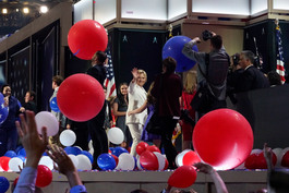 USA. Philadelphia, Pennsylvania. 2016. Hillary Clinton after her speech inside the Wells Fargo Center during the last day of the DNC.