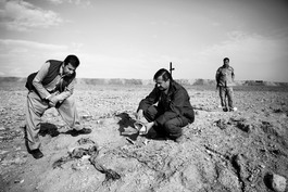 IRAQ. Sinjar. 2015. Dr Azar, left, looks at a mass grave around the town of Sinjar.
