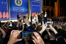 USA. Washington, DC. January 20th, 2017. Donald Trump arrives at the Presidential Inaugural Salute to our Armed Services Ball at the National Building Museum after the inauguration of Donald Trump as 45th President of the United States of America.