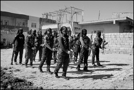 TURKEY. Nusaybin. March 7, 2016. A unit of female Kurdish YPG fighters, a Kurdih militia aligned with the PKK, stand in formation during a Women's Day celebration in the Firat district of Nusaybin, south-east Turkey.
