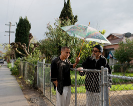 USA. Stockton, CA. 2016. Rocky speaks with an elder from SSS on Lincoln street, where a lot went down back in the day. He says most of the people from his generation on this street have been killed. From a story reflecting on the troubled, violent life of Adrano Rontal, aka Rocky.