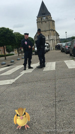FRANCE. 30th July 2016. Saint-Etienne du Rouvray (Seine-Maritime). Pokemon Go in front of the church where a priest was killed.