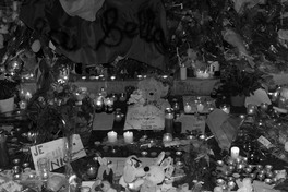 FRANCE. Nice. 2016. Night after the truck rampage. Candles and letters for the victims gathered by the Promenade des Anglais.