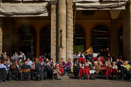 ITALY. Bologna. Cafe on Piazza Maggiore. 2015.