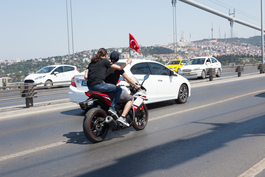 TURKEY. Istanbul. July 16th, 2016. The day after the military coup attempt. On the Bosphorus Bridge, where so much violent occured in the morning and where, in the beginning of afternoon, everything went back to normal as if nothing had happened.