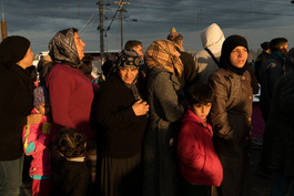 GREECE. Idomeni. March, 2013. Refugees wait in line near the Greece-Macedonia border for food provided by Aid Mission Delivery which has been cooking for 7,000 refugees each day.