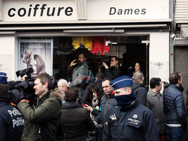 Schaerbeek district. People and international medias on the spot where one suspect was arrested earlier. Belgian police have arrested in total six people on Tuesday as a major investigation continues into attacks.
