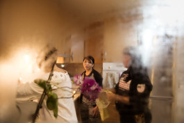 FRANCE. Fourqueux. 2016. Catherine, Kunga and Tseyang are making dinner together in their house. Kunga and Tseyang love to cook traditional Tibetan dinner.
