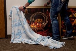 A painting by Iranian refugee and artist named Reza will be transported from the CSI refugee center for an exhibition in Washington, DC. His paintings were banned in Iran.