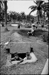 VIETNAM (North). Hanoi. 1975. Children use personal shelters against US bombs as playground.