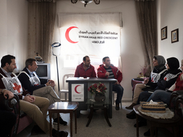 ICRC President Peter Maurer and Robert Mardini visit a SARC office in Al Waer, a suburb of Homs.