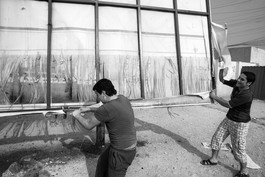 IRAQ. 2016. Residents of Fazilia tear down ISIS posters.