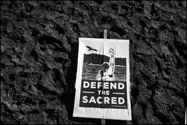 USA. Standing Rock, North Dakota. November 18th, 2016. Water Protector sign on banks of Missouri River.