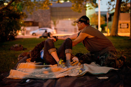 USA. Eugene, OR. 2015. Blossom and Eric, homeless in Eugene.