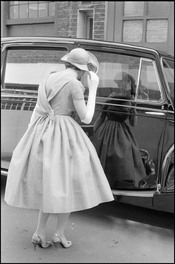 ENGLAND. London. 1958. Debutante Diane Kirk, off to the palace in a hired Daimler.