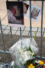FRANCE. Normandy. Saint-Etienne du Rouvray. 28 July 2016. After the assassination of priest Father Jacques Hamel. In front of the church where he was killed.
