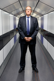 GB. England. Oxford. Richard Ovenden, Bodley’s Librarian (director of the Bodleian Libraries), in the tunnel known as the Gladstone Link, which joins the Radcliffe Camera with the old Bodleian Library. 2016.