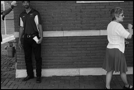 USA. Arkansas. Hope. 2016. People standing in front of Hope train station.