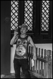 CHINA. Henan Province. Kaifeng. The Kaifeng Prefecture of the Northern Song Dynasty is now the Government Park. Chinese tourist. with a monkey T-shirt.