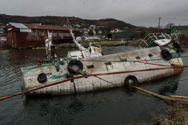 FRANCE. Normandy. Fecamp. A trawler wreck in the harbour.