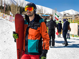 IRAN. Alborz Province. 2016. Iranian skiers and snowboarders...