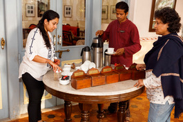 INDIA. Maharashtra. Matheran. Verandah in the forest. Afternoon tea. 2016.