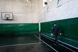 UKRAINE. Artemivsk. 2016. Near the frontline. Prison and prison guard. Near frontline.