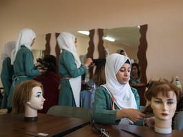 JORDAN. 2016. Al Taybeh school, where UNOPS has paid for everything inside the school, furniture, equipment, musical instruments.