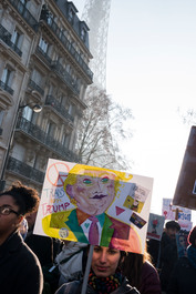 FRANCE, Paris, 2017/01/21. Coinciding with the Women's March on Washington protest against US President D.Trump the day after his inauguration, women's groups and other anti Trump protesters march from Trocadero around the Eiffel Tower to the "Ecole Militaire".