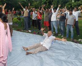 INDIA. Patna. 2016. Dr. Madan Kataria leads laughter yoga at...