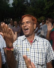 INDIA. Patna. 2016. Dr. Madan Kataria leads laughter yoga at...