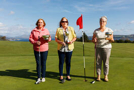 GB. Scotland. Dunoon. Innellan Golf Club. Golf trophy winners, left to right: Irene Hodge, Nancy Morris, Margaret Lauder. 2016.