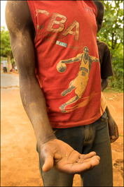 Africa. Uganda. Near Tororo. 2016. Fair Trade. A child miner shows the small piece of amalgam on his palm at the Margaret Ikee Conventional Open Cast Mine.