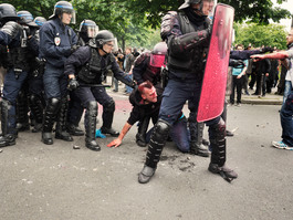 FRANCE. Paris. May 26, 2016. Protest against labour law "El Kohmry" from Bastille to Place de la Nation.