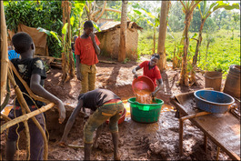 Africa. Uganda. Near Tororo. 2016. Fair Trade. Miners wash the mud to trap small grains of gold at the Busia United Mine.