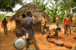 Africa. Uganda. Near Tororo. 2016. Fair Trade. Miners dig for gold close to their dwellings at the Margaret Ikee Conventional Open Cast Mine.