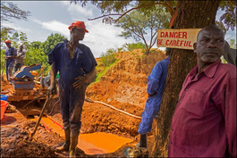 Africa. Uganda. Near Tororo. 2016. Fair Trade. Miners pump water out of a flooded area of the Sama Fair Trade Mine.
