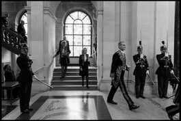 FRANCE. Paris. Dec. 15, 2016. Reception of Franco-Russian writer Andreï MAKINE by the French Academy. Republican Guards present military honours to him as he goes to the cuppola to deliver his speech.