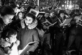 USA. New York. Singing Christmas carols in Washington Square Park. 2016