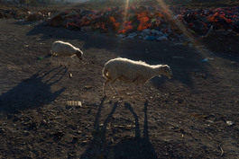 GREECE. Lesbos. 2016. There is little left for sheep grazing the barren "Lifejacket Graveyard."