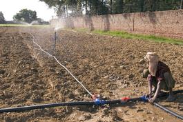 INDIA. 2005. Outskirts of New Delhi. IDE (International Development Enterprises) India, an Indian not-for-profit committed to providing solutions to malnutrition, poverty and hunger. Sprinkler units on a demo plot.