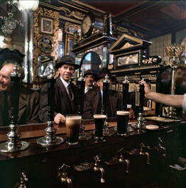 IRELAND. Dublin. Waiting for pints of Guinness at the bar 1962.