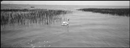 USA. Mississippi. September 5, 2005. Waveland area. Much of the coastal area of Mississippi was destroyed including downtown businesses, ports, marinas, boats, railroads, highways, and entire residential neighborhoods. Trees were snapped like tooth-picks and all homes on the beach area had completely disappeared. A lonely swan had taked refuge inland.