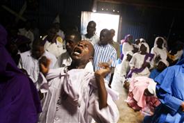 Man who is "posessed by the spirits" in a Legion Maria church in Kibera.