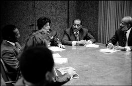USA. Chicago, Illinois. 1991. Ebony Magazine. Publisher and chairman John H. JOHNSON (center) in a meeting.