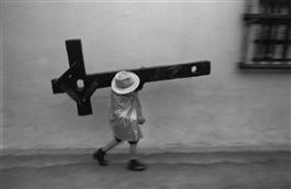 GUATEMALA. El Quiche. Chichicastenango. 1988. A boy carries a cross to church for a catholic festival.