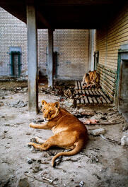 KUWAIT. March 1991. Starved lions in their cage at the Kuwait City Zoo.