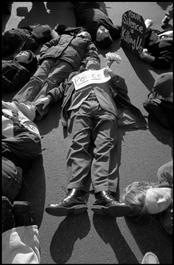 USA. New York City. March 27, 2003. Anti-war protestors perform a "die-in" in front of Rockefeller Center.